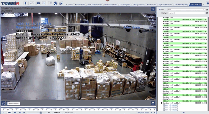 TRASSIR ActiveStock akıllı modülü, depo operasyonlarının olay tabanlı video izlemesi için profesyonel bir yazılımdır.
